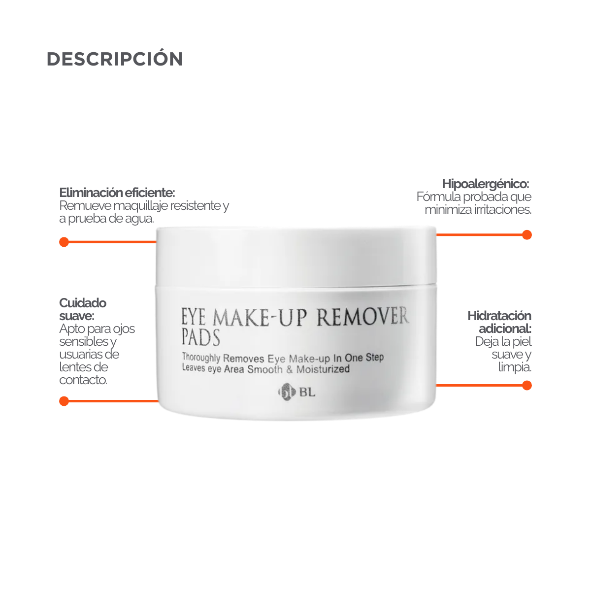 Las Eye Make‑up Remover Pads Blink by BL Lashes son toallitas desmaquillantes especialmente formuladas para eliminar maquillaje, residuos y aceites de la zona ocular sin afectar las extensiones de pestañas. Su fórmula oil‑free y enriquecida con aloe vera limpia eficientemente sin irritar, dejando la piel suave y preparada para el siguiente paso del servicio.
